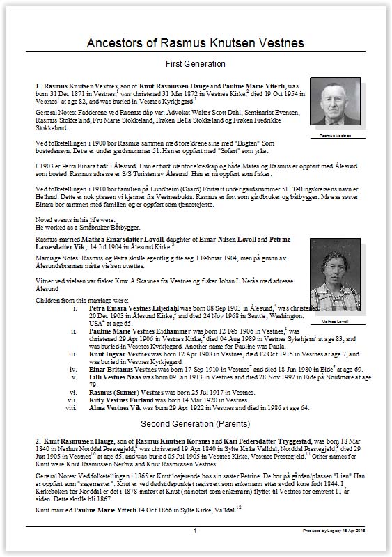 For many years I used the Brother’s Keeper software. It was a coincidence that I started out with this one. A couple of years ago I switched to the Legacy Family Tree software. The reason for this was mainly that this software have more options as to how to output the data (charts, books, webpages etc.) Legacy does the job for me and I have not yet exhausted all its possibilities.